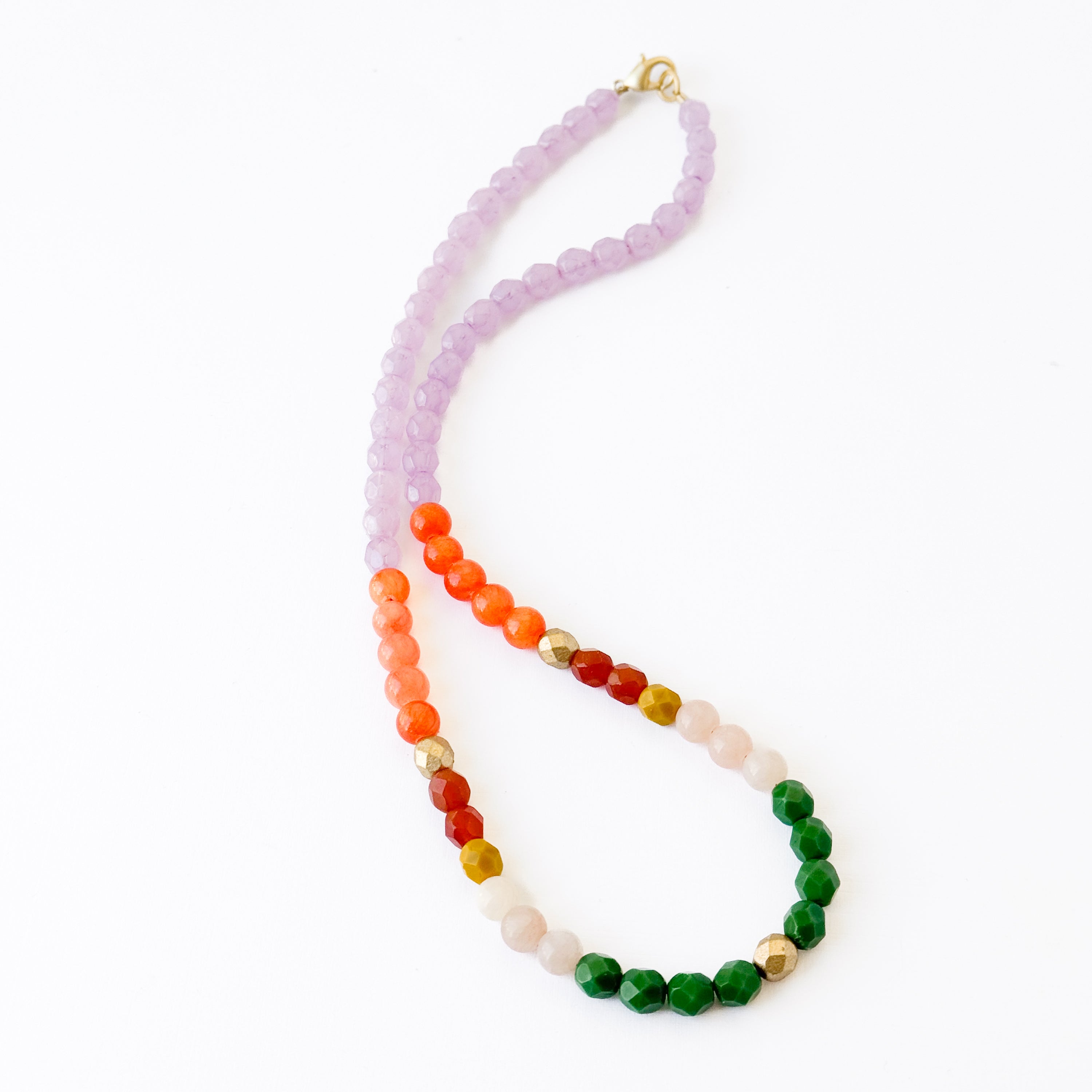 Add a pop of color to your everyday style with this lightweight mixed bead necklace. Made with faceted glass and smooth dyed mountain jade beads, each necklace features a thoughtfully...