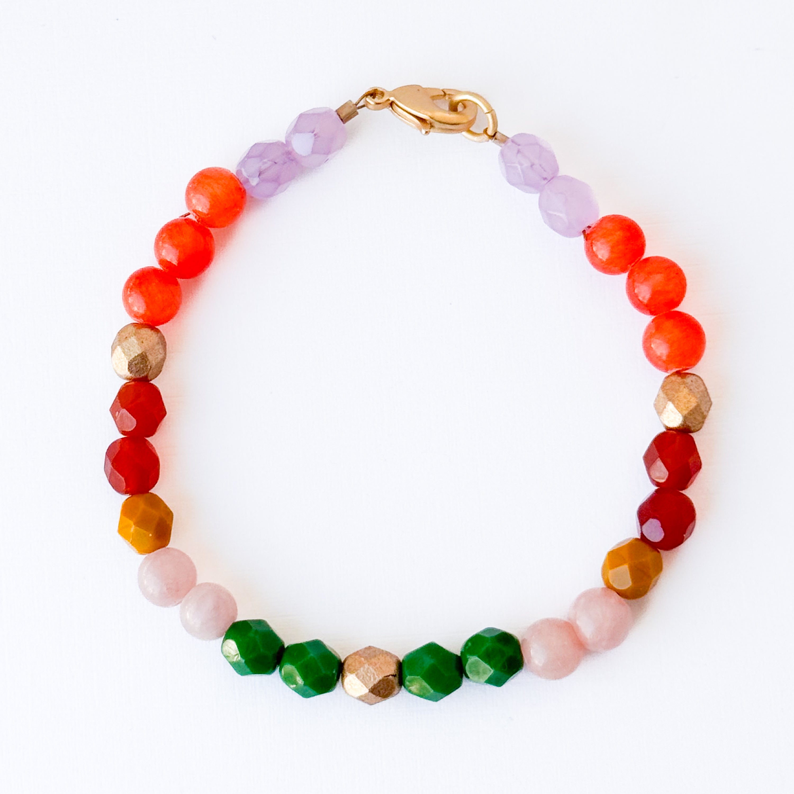 This lightweight beaded bracelet blends faceted glass beads with smooth dyed mountain jade for a playful yet refined look. Designed to add color without feeling heavy, it’s perfect for everyday...