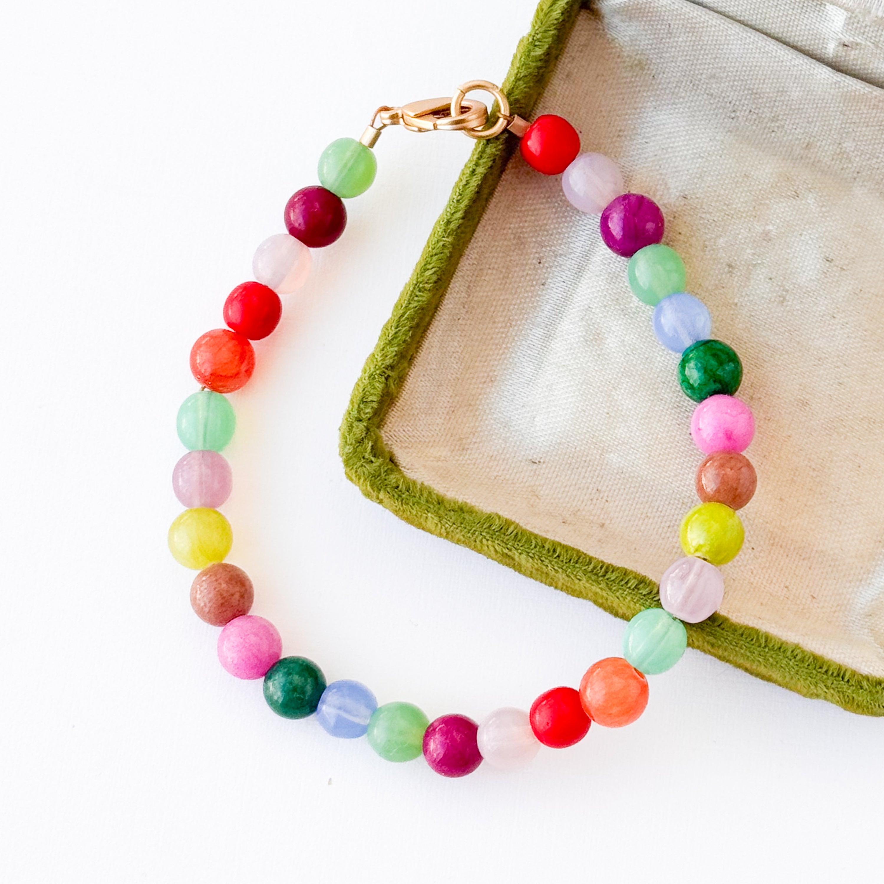 Bright, joyful, and irresistibly fun — our Candy Necklace is made to celebrate color. This playful piece is hand-strung with 6mm mountain jade and smooth glass beads in a vibrant...