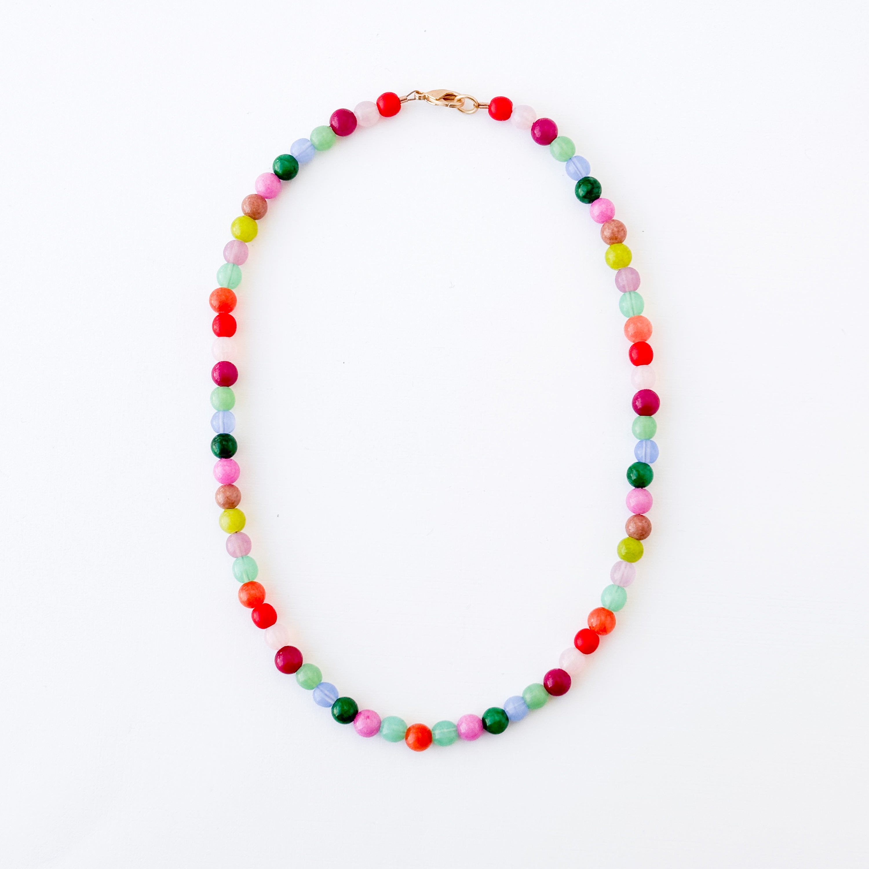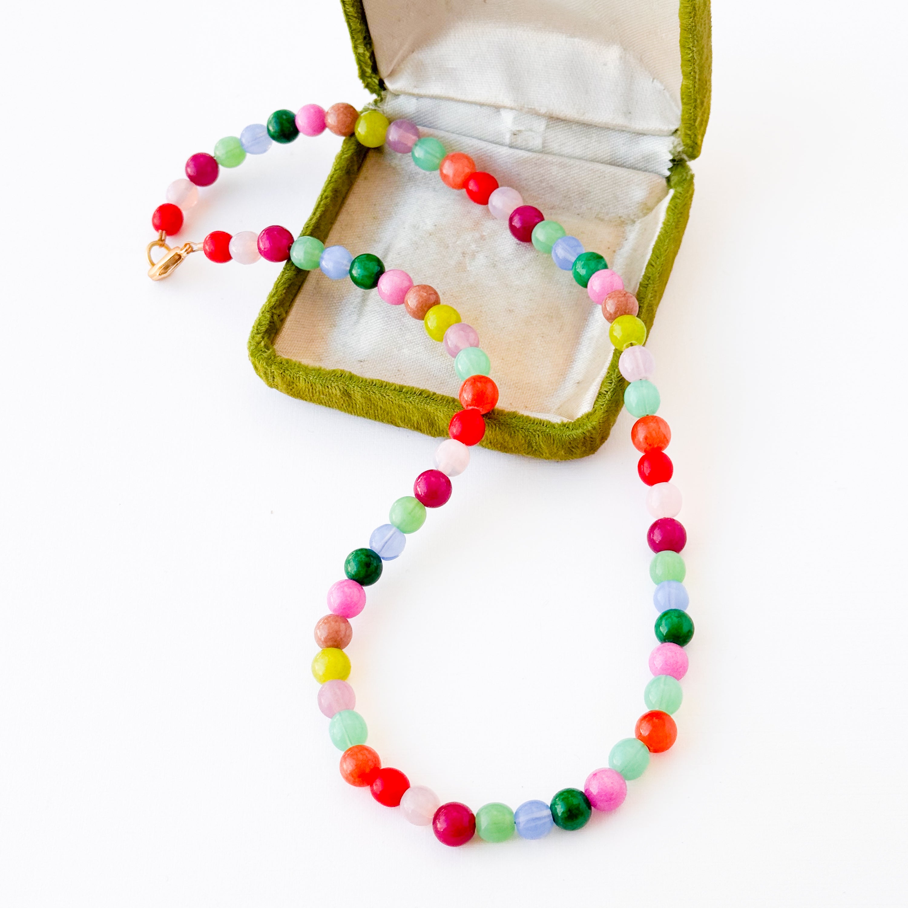 Bright, joyful, and irresistibly fun — our Candy Necklace is made to celebrate color. This playful piece is hand-strung with 6mm mountain jade and smooth glass beads in a vibrant...