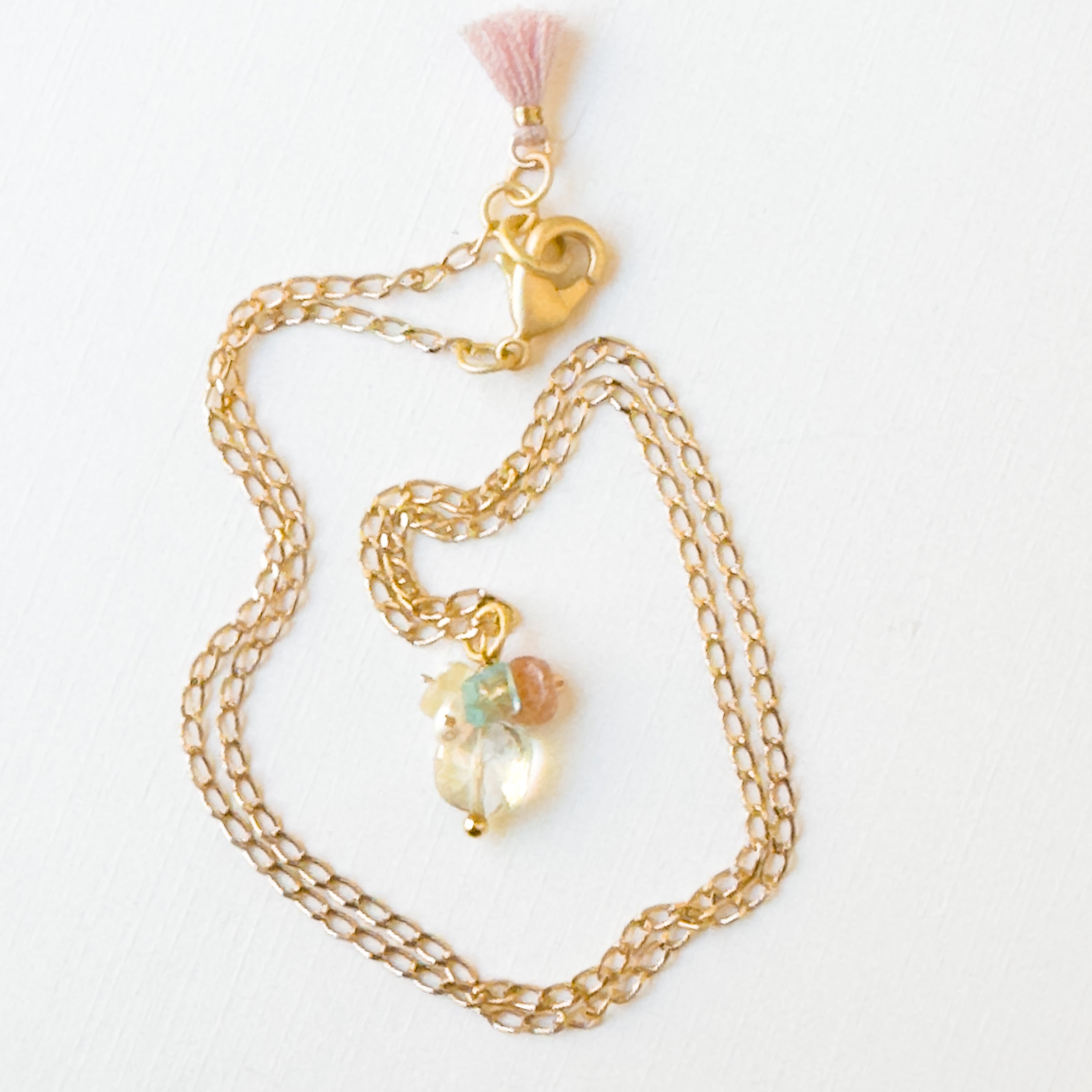dd a cheerful splash of color with this handmade candy glass bead necklace. Crafted with smooth, colorful glass beads on a durable dainty 24K gold plated chain, this necklace is...